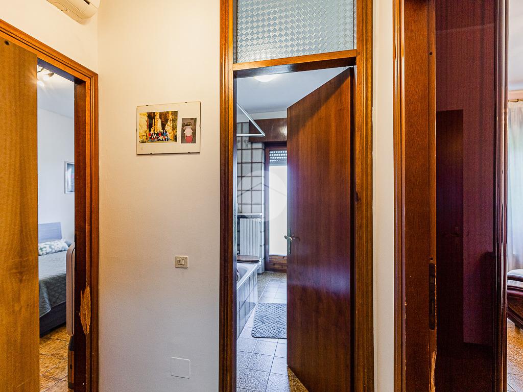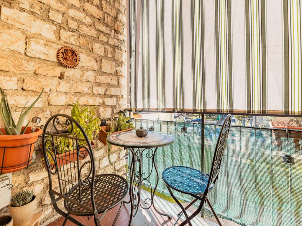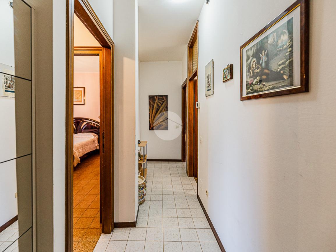 L’immobile, con accesso dal primo piano, si compone di ingresso nel corridoio, ampio soggiorno, cucina semi abitabile con accesso ad un balcone, disimpegno per la zona notte, servizio finestrato e due camere da letto matrimoniali, di cui una con affaccio su un secondo balcone, accessibile anche dal servizio con gradevole vista aperta.