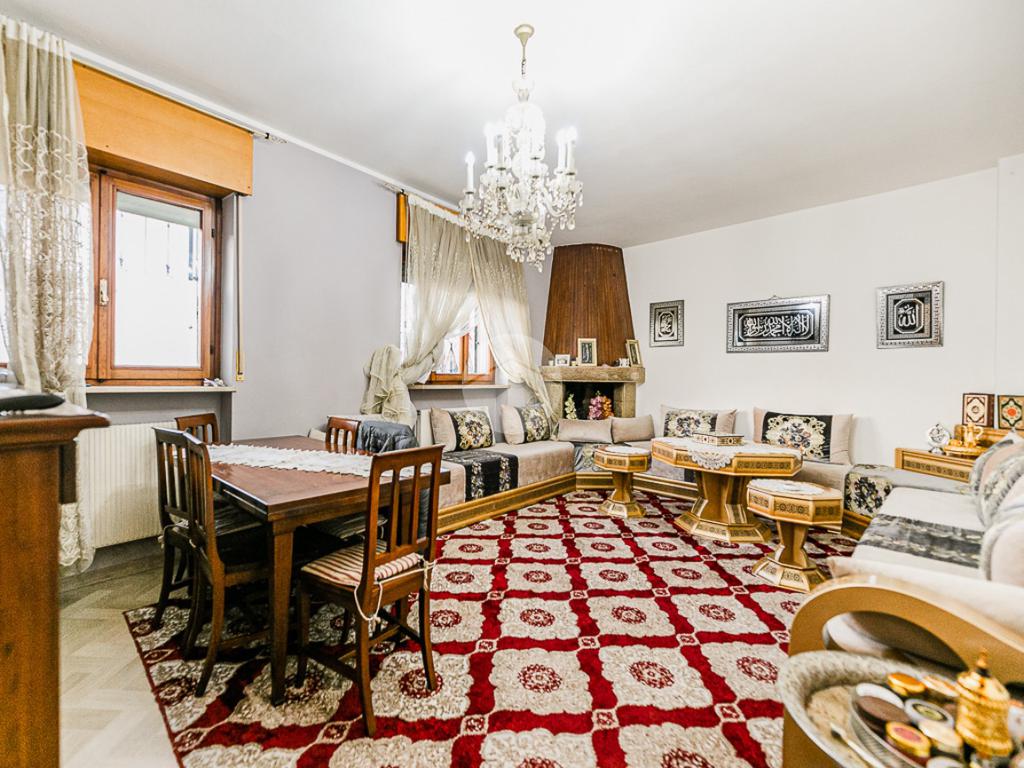 L’ingresso indipendente conduce direttamente alla zona giorno composta da ampio soggiorno e cucina separata. La zona notte ospita invece tre camere da letto e due servizi finestrati.