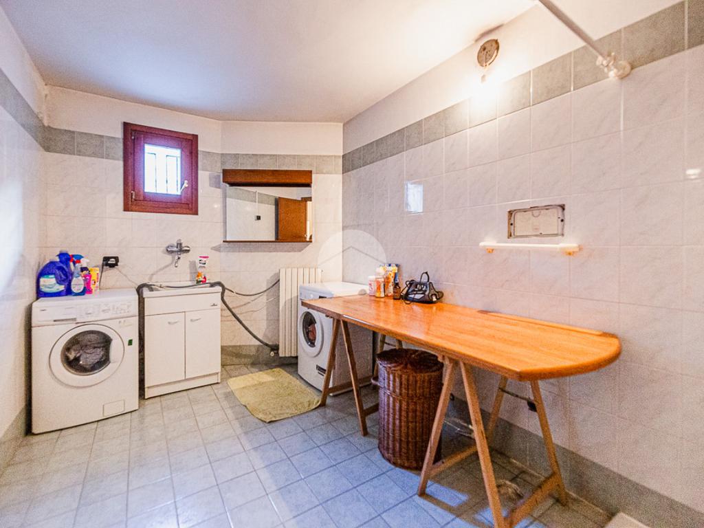 Al piano interrato, la soluzione offre una calda e caratteristica taverna di circa 25 mq con camino e blocco cucina. Completa il piano un’utile cantina, una lavanderia e un ampio garage doppio.