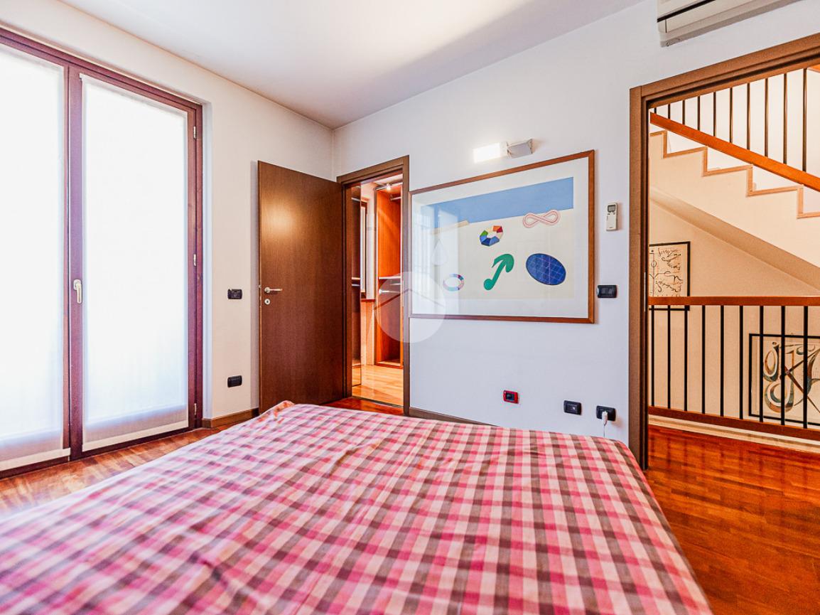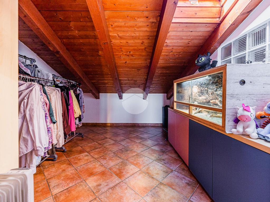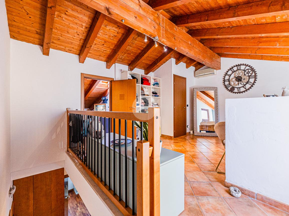 Al secondo ed ultimo livello, troviamo un’ulteriore camera matrimoniale con affaccio su un solarium, un secondo servizio e un locale attualmente adibito a cabina armadio.