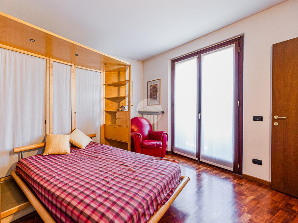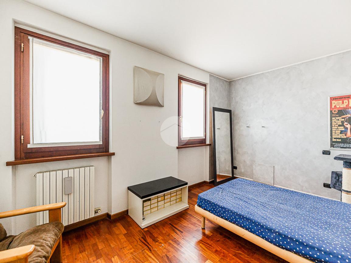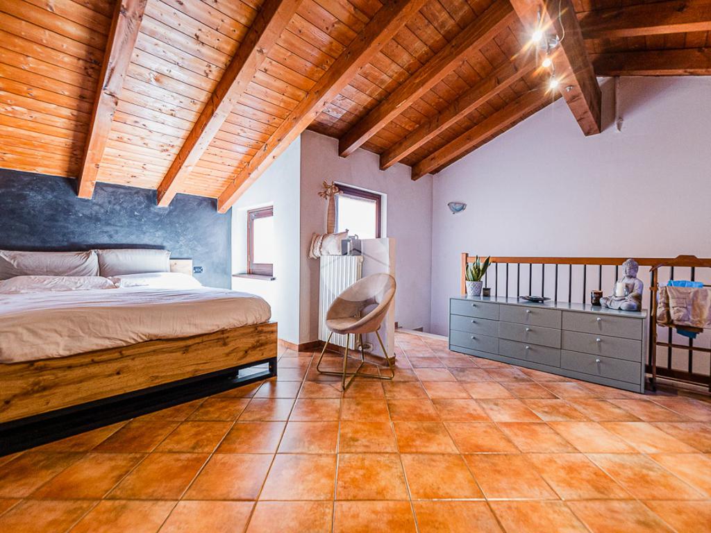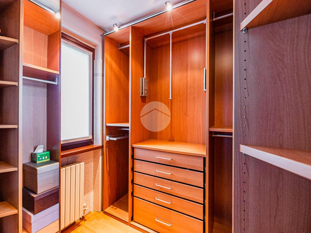 Al secondo ed ultimo livello, troviamo un’ulteriore camera matrimoniale con affaccio su un solarium, un secondo servizio e un locale attualmente adibito a cabina armadio.